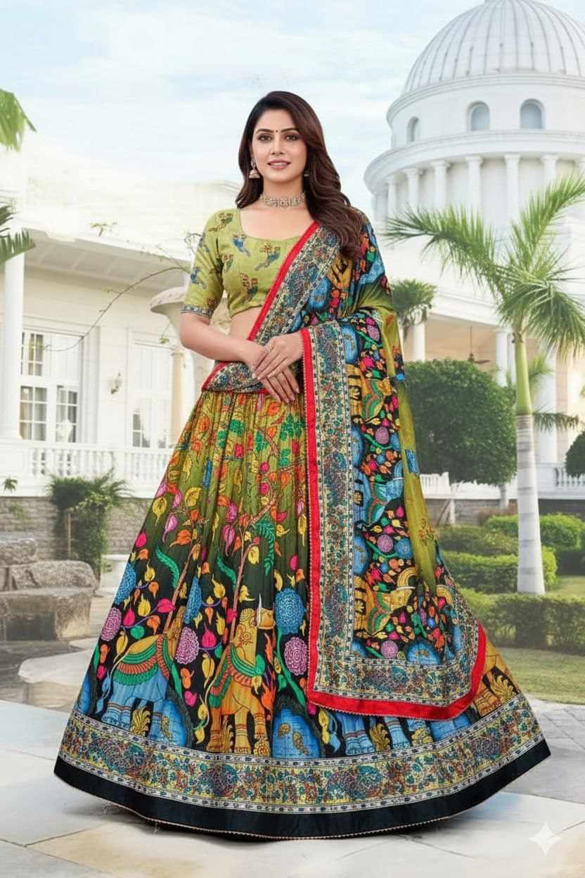 PIYU 11-2 Silk Digital print Mehndi Lehnga
